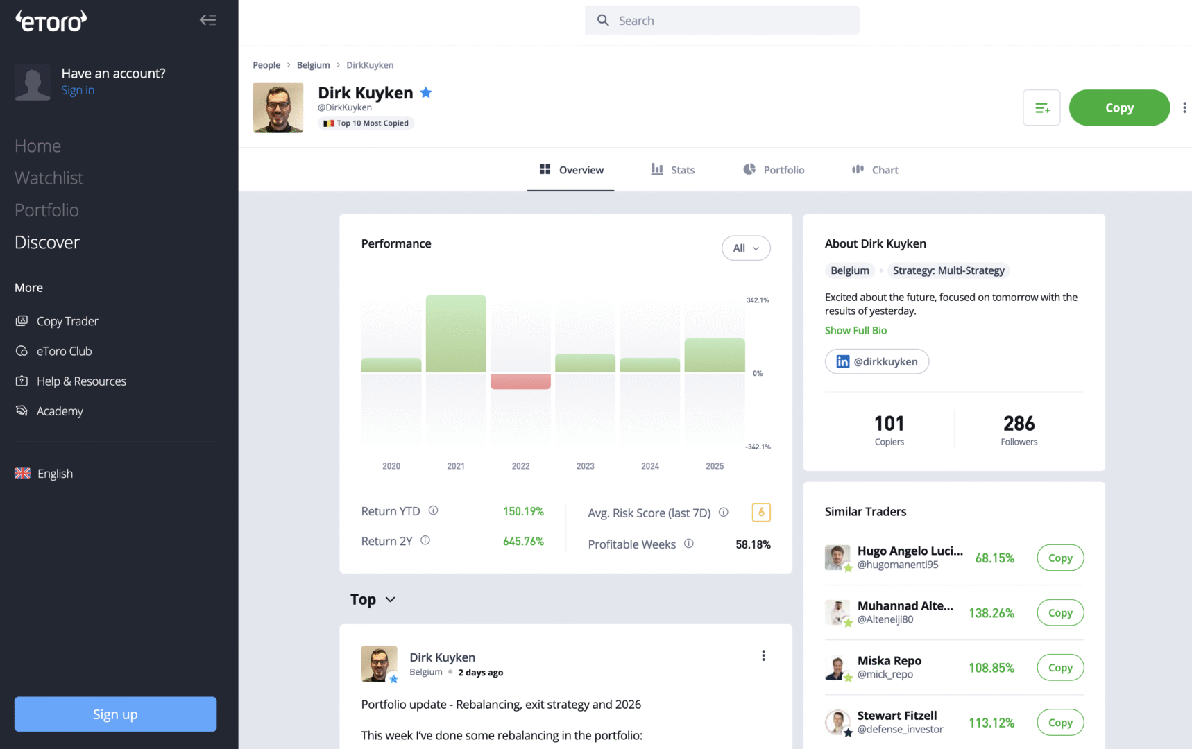 Besides sharing my investing journey here, I am also part of the Popular Investor Program on eToro. This means that other investors can choose to copy my portfolio in real time and automatically mirror my trades.